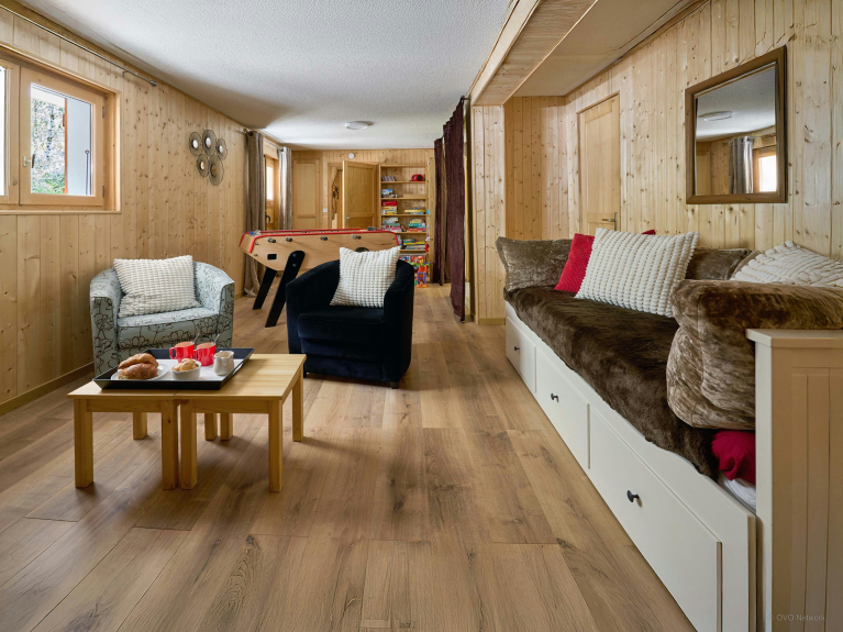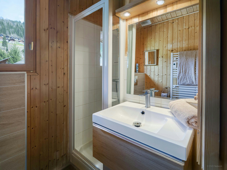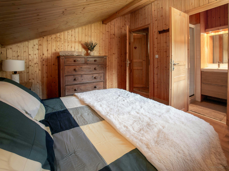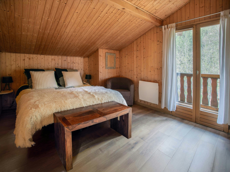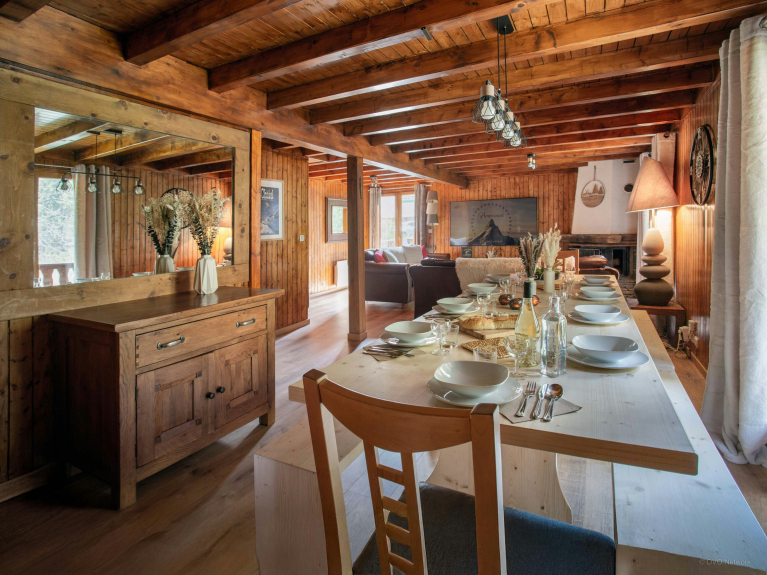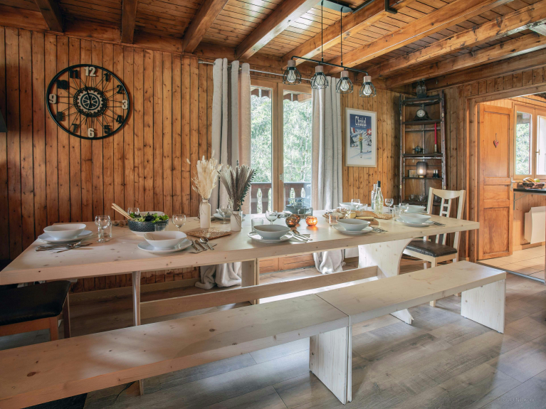 Nous apprécions particulièrement l’atmosphère chaleureusement boisée qui imprègne ce chalet de 14 personnes (dont 12 adultes max.), situé à seulement 2 km du village de Châtel.