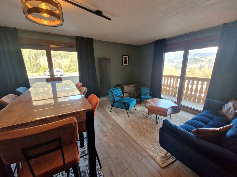 - 2 grands balcons avec porte-fenêtre exposition Nord-Ouest, magnifique vue sur les montagnes.