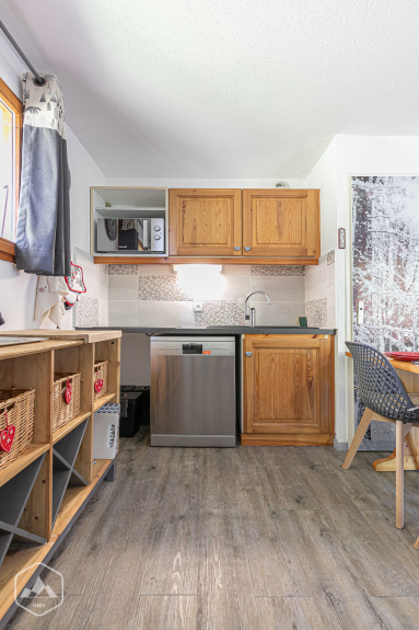 - coin cuisine équipée, ouvert sur le séjour avec grand réfrigérateur et compartiment congélateur, lave-vaisselle, toaster, bouilloire, cafetière, four à chaleur tournante, micro-ondes, service à raclette, crêpe party, table de cuisson vitrocéramique, autocuiseur.