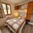 - 2 couchages en lits superposés dans une petite chambre, porte et fenêtre.