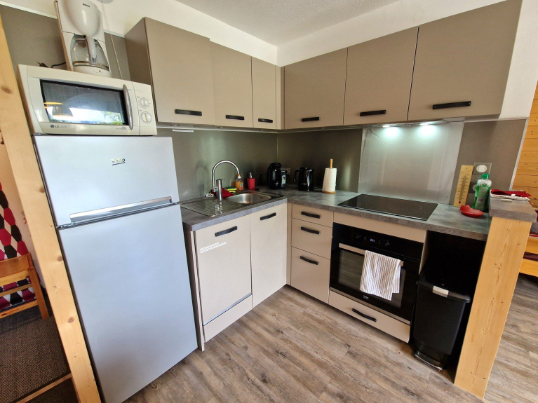 - Coin cuisine avec 4 plaques chauffantes, réfrigérateur, four, lave-vaisselle, micro-ondes.