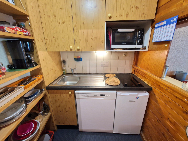 - Coin cuisine avec 2 plaques chauffantes, réfrigérateur, four, lave-vaisselle, micro-ondes.