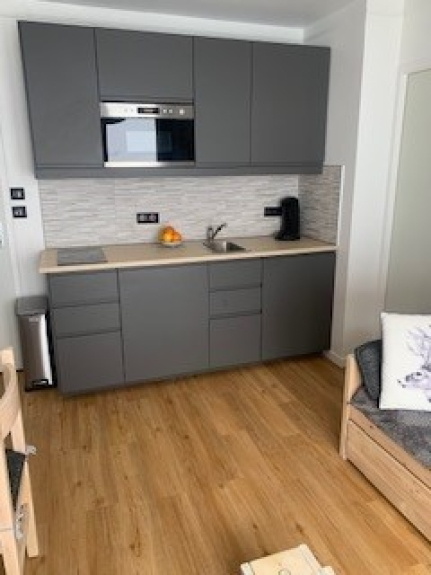 - cuisine avec lave-vaisselles, plaques chauffantes, réfrigérateur, micro ondes.