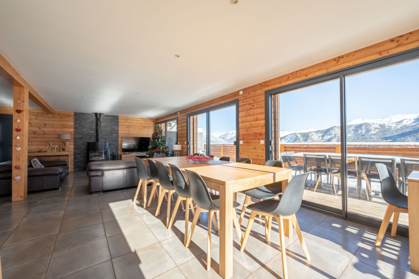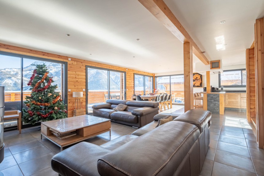Chalet Prestige neuf pour 16 personnes d'environ 220m² sur 3 niveaux. Exposé Sud et Est avec grande terrasse et jardin. Connexion ADSL WIFI. Lits faits à l'arrivée. Le linge de toilette n'est pas fourni avec le chalet, vous avez la possibilité de le louer auprès de l'agence avant votre arrivée.