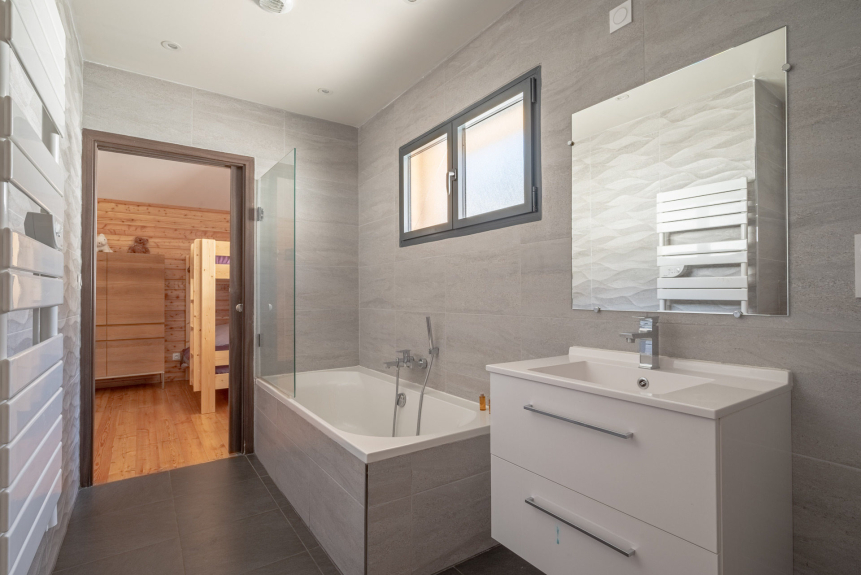 * Salle de bain partagée pour chambre 4 et 5 avec baignoire et WC ;