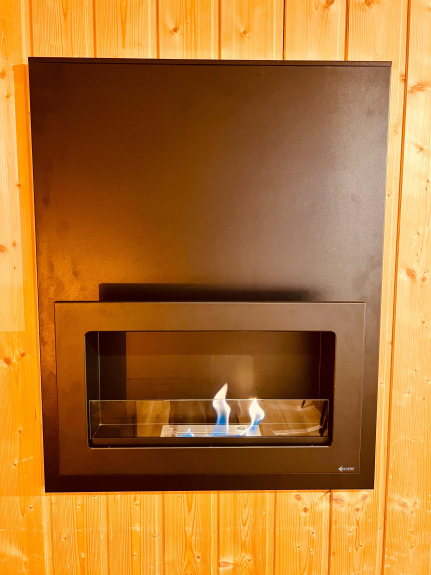 • Pièce de vie chaleureuse avec cheminée à l'éthanol