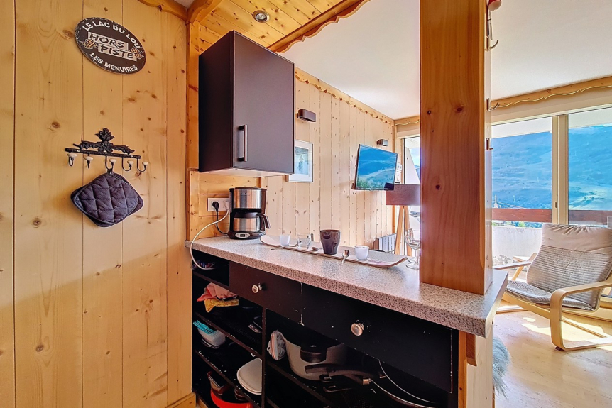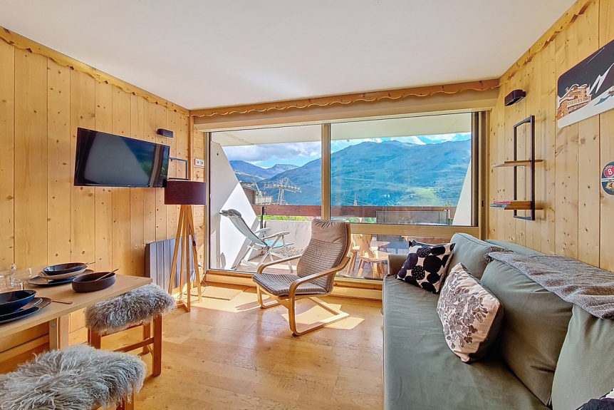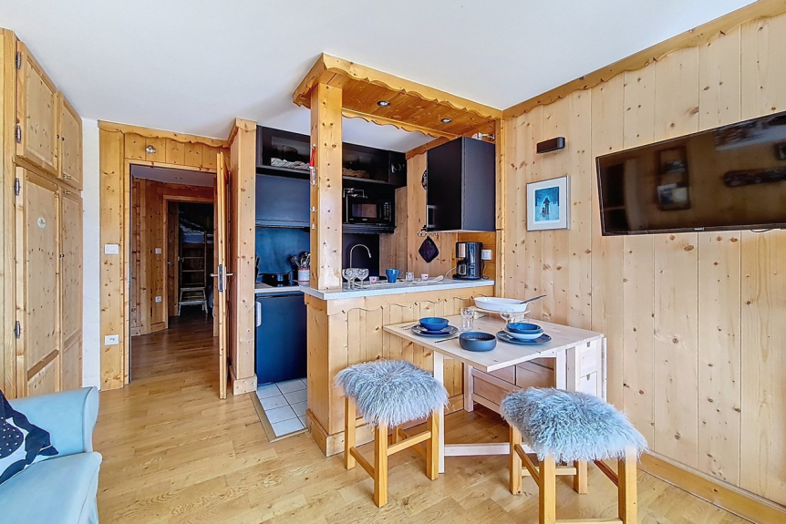 Appartement de 25m² situé au 3ème étage de la résidence possédant un balcon exposé Sud offrant une vue magnifique sur la station.