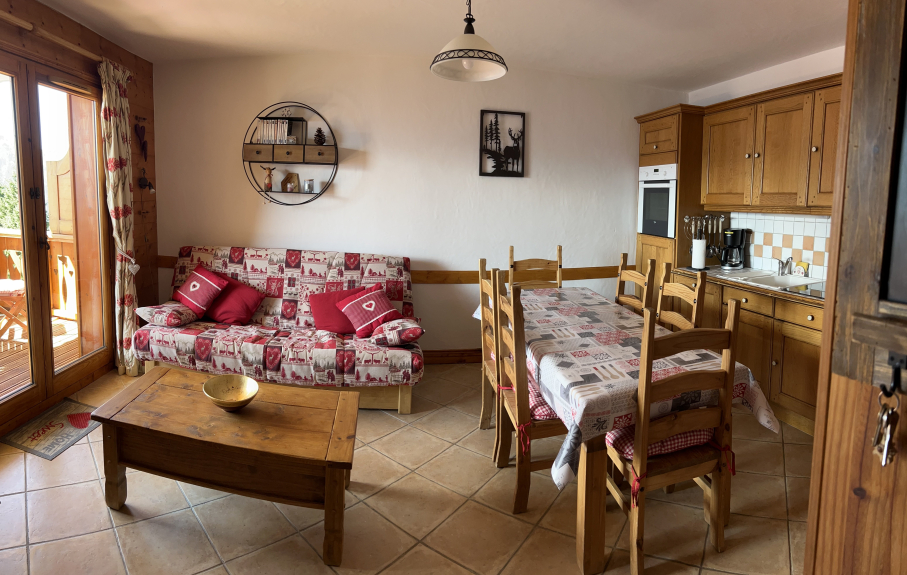 Très bel appartement 3 pièces de 40 m² pour 4 à 6 personnes situé au rez de chaussée de la résidence "Les Fermes du Beaufortain", à Bisanne 1500.