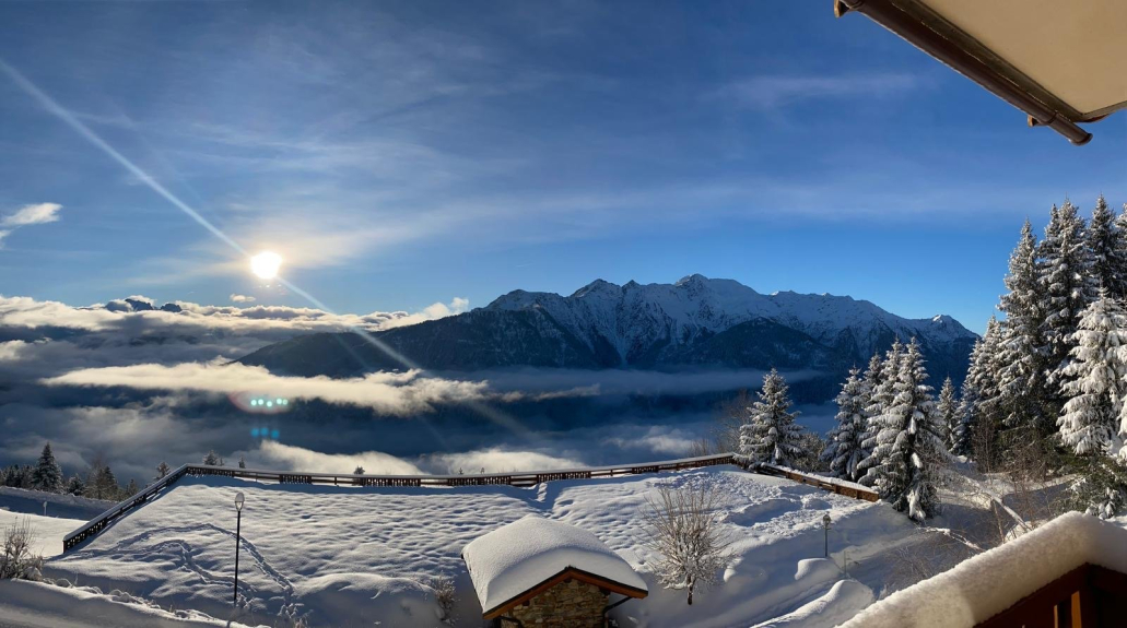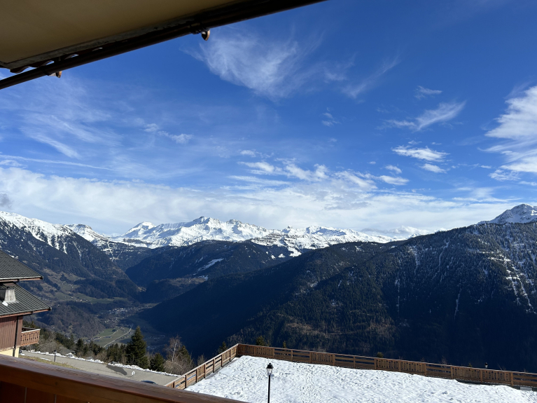 - Balcon de 5.60m² exposé sud avec une belle vue sur le Mont-Blanc et les montagnes du Beaufortain