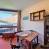 Cuisine ouverte équipée de 2 plaques vitro céramiques, réfrigérateur, mini four, bouilloire, grille-pain et cafetière TASSIMO.