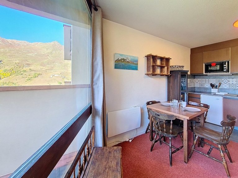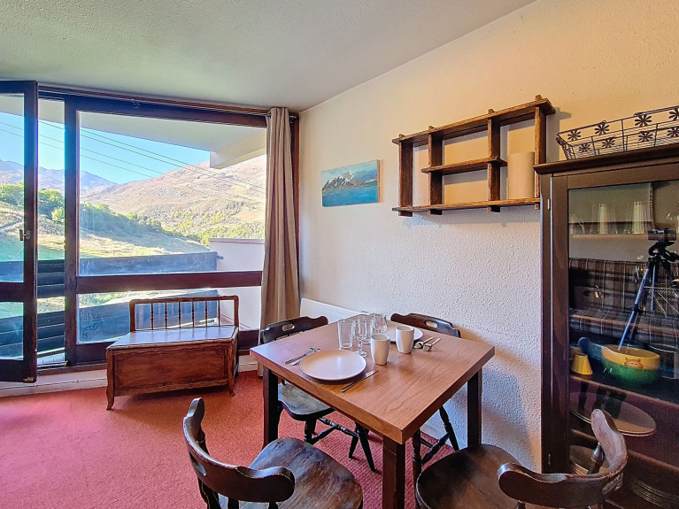 Studio de 20 m² pour 3 personnes. Il est situé au rez de chaussée avec un balcon orienté Sud.
