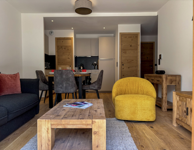 Bienvenue à l’appartement YÉTI, un élégant 2 pièces idéalement situé au cœur de Chamonix, au pied du Mont-Blanc. Installé au 3ᵉ étage d’une résidence neuve de standing livrée en juin 2025, ce logement allie confort moderne, emplacement central, calme et vue imprenable sur les montagnes.