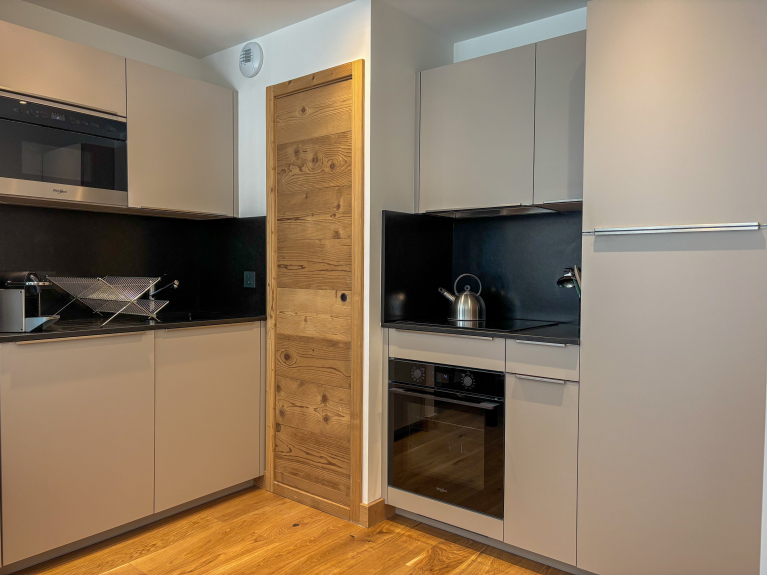 - Une pièce de vie spacieuse et lumineuse avec cuisine toute équipée (lave-vaisselle, plaques induction, frigo-congélateur, grille-pain, machine Nespresso), espace repas et salon avec canapé convertible haut de gamme + enceinte Bluetooth Marshall.
