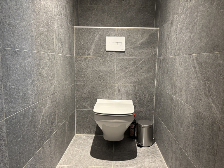 - Une salle d’eau moderne avec douche à l’italienne, sèche-serviettes et lave-linge/sèche-linge.