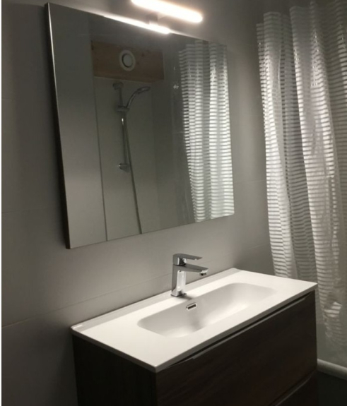 Cuisine incorporée 2 plaques vitrocéramiques, réfrigérateur, mini four, mini lave vaisselle, micro ondes, bouilloire, grille-pain et cafetière.