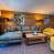 Cuisine ouverte moderne avec îlot central (frigo américain, four, micro-ondes, lave-vaisselle, plaque induction, cafetière, bouilloire)