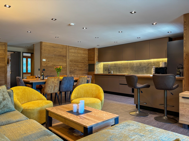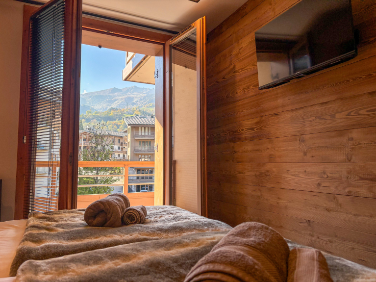 L’appartement ECUREUIL (105 m²), rénové à l’été 2025, mêle charme alpin et confort moderne. Il peut accueillir jusqu’à 8 personnes et se situe au 3 étage d’une résidence calme. Trois balcons-terrasses offrent une vue dégagée sur les montagnes.
