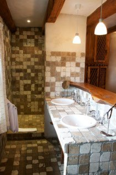 Salle de bain ouverte avec douche à l'italienne