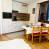 Cuisine ouverte équipée : 2 plaques électriques, micro-ondes, lave-vaisselle, réfrigérateur, bouilloire, grille-pain, machine à café
