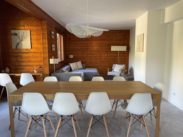 Notre chalet, pour 8 à 10 personnes est spacieux et lumineux avec vue sur les montagnes et pistes de ski. Il a été rénové depuis peu en gardant son cachet traditionnel d'origine. Il convient parfaitement aux familles et groupes.