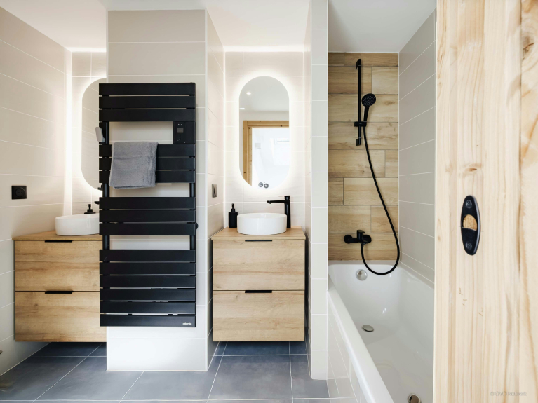 L’une des chambres doubles bénéficie de sa propre salle de douche avec toilettes, et vous trouverez une seconde salle de bains avec baignoire et toilettes.