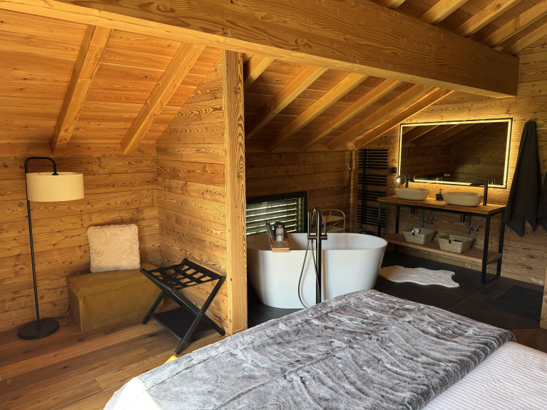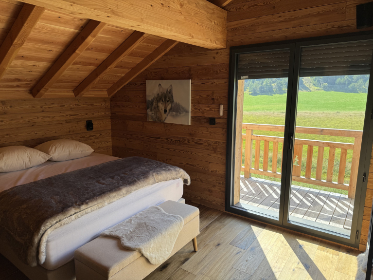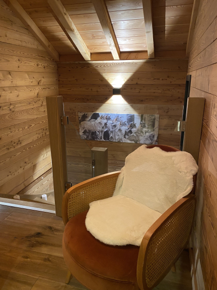 Alliant authenticité et un confort haut de gamme, le chalet est une invitation à la détente, avec le bénéfice d'une vue imprenable sur la nature.