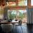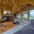 La pièce de vie est baignée de lumière grâce à de nombreuses fenêtres et baies vitrées. Le coin salon est généreux et confortable, avec deux vastes canapés faisant face à une cheminée et à une télévision grand écran. Une cuisine moderne tout équipée avec un comptoir s’ouvre naturellement sur le reste de la pièce.