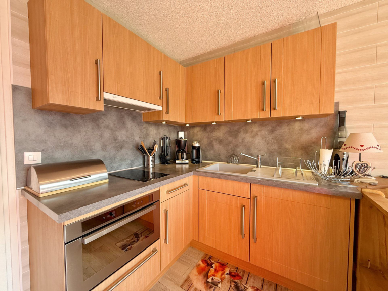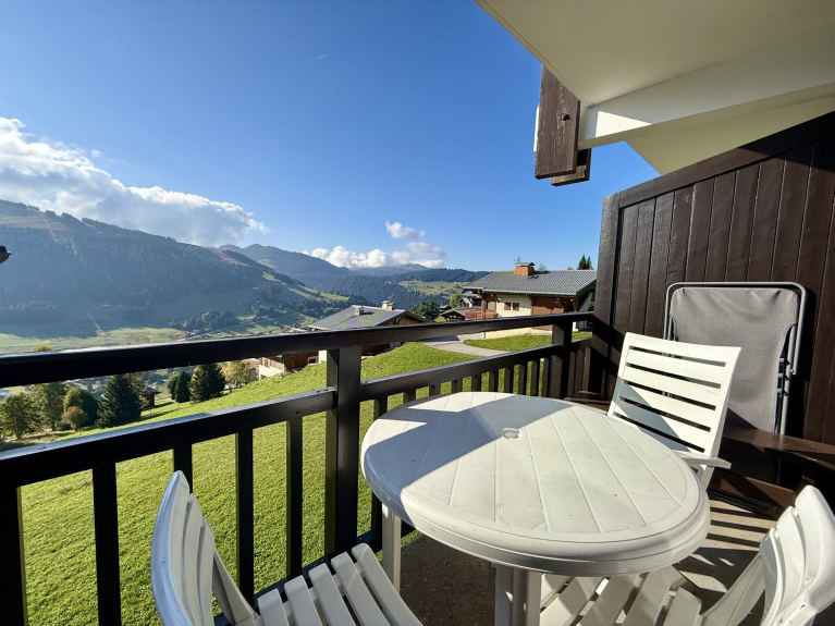 NOTRE AVIS : Il est bien optimisé pour un petit espace, lumineux, et offre une très belle vue. Il conviendra parfaitement à un couple ou une petite famille. En été, vous pourrez profiter d'un vaste domaine ainsi que de terrain de tennis réservés aux résidents. Au départ de fabuleuses randos.