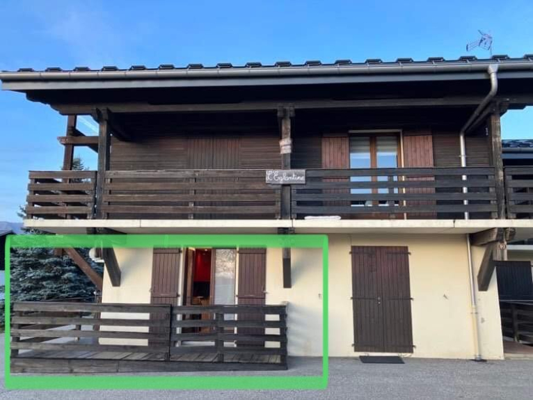 Vous aurez également accès à un casier à skis en sous-sol, un emplacement parking devant la résidence et une terrasse en L avec une vue directe sur la Chaîne des Aravis.