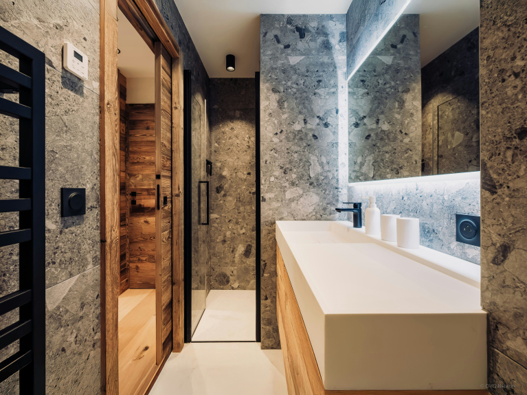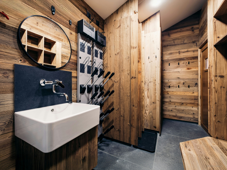 Côté pratique, un local à skis séparé, parfaitement équipé avec lavabo, sèche-chaussures chauffant, lave-linge et sèche-linge, assurera votre confort dès votre retour des pistes.