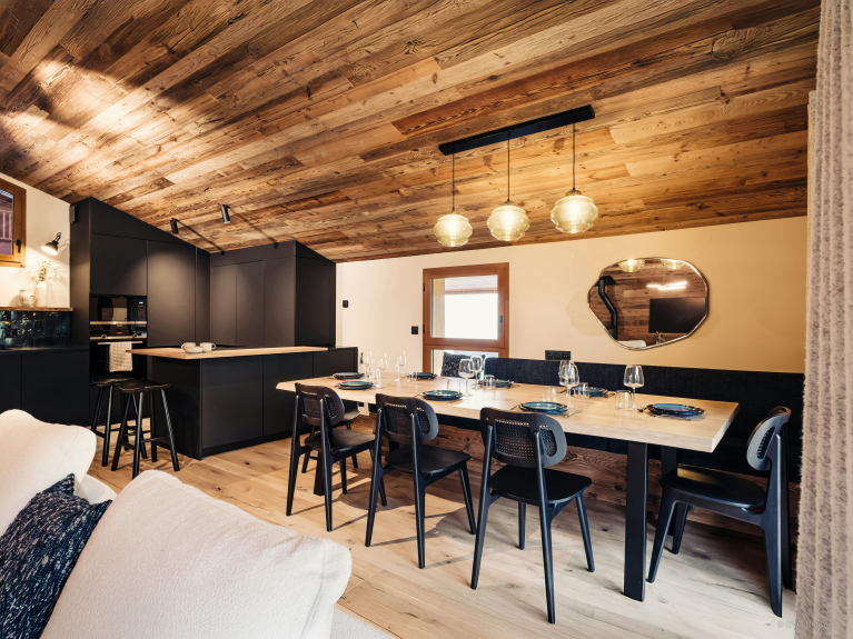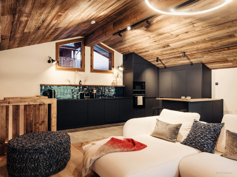 Un local à skis séparé, doté d’un lavabo et d’un sèche-chaussures chauffant, permet de retrouver tout le confort du chalet après une journée sur les pistes. Lave-linge et sèche-linge complètent les aménagements fonctionnels du Chalet Ritord, tandis qu’un garage couvert et un emplacement extérieur pourront recevoir vos véhicules.