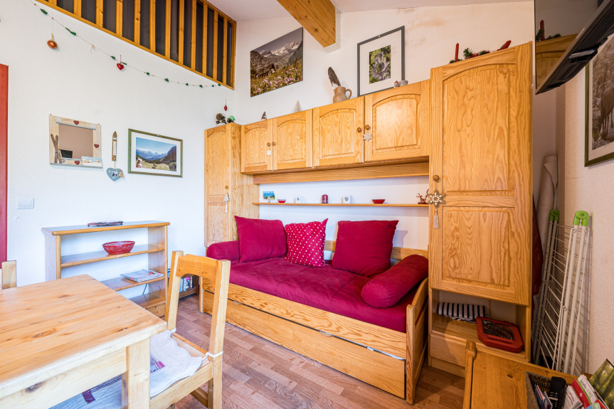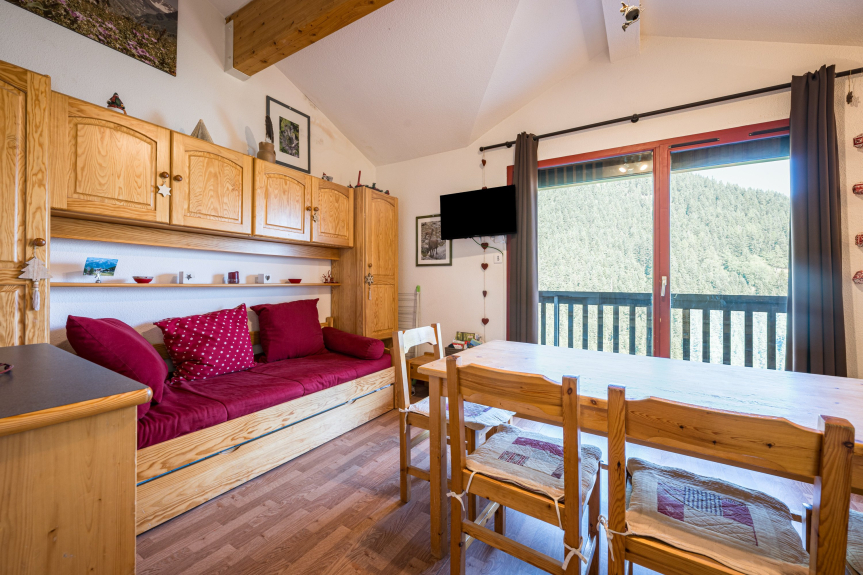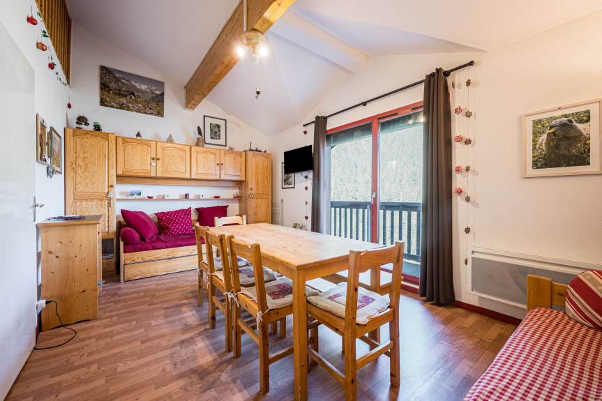 Cet appartement offre une vue sur le massif de la Vanoise (grand balcon).