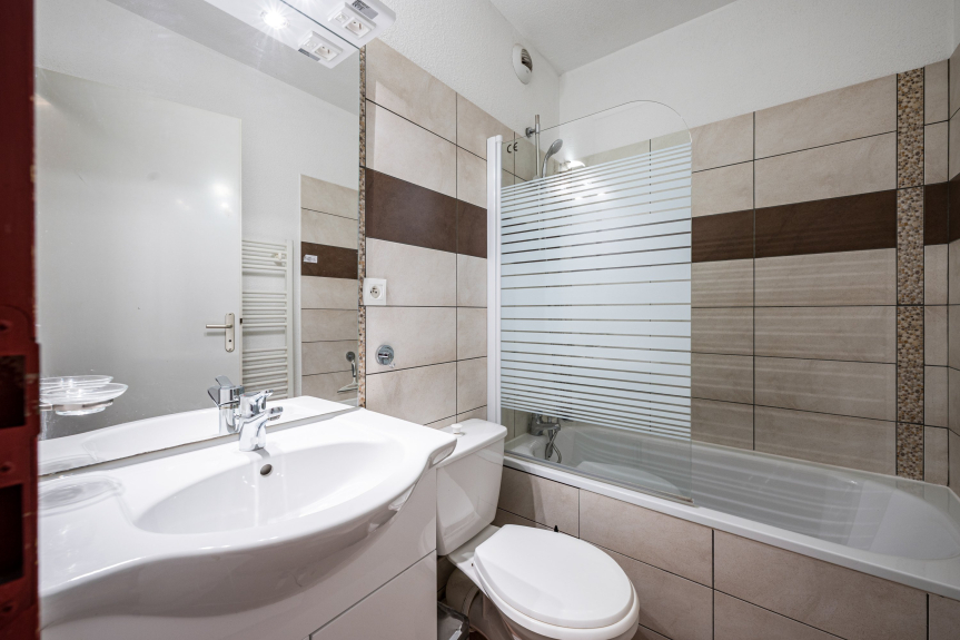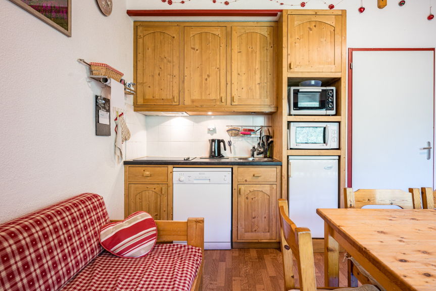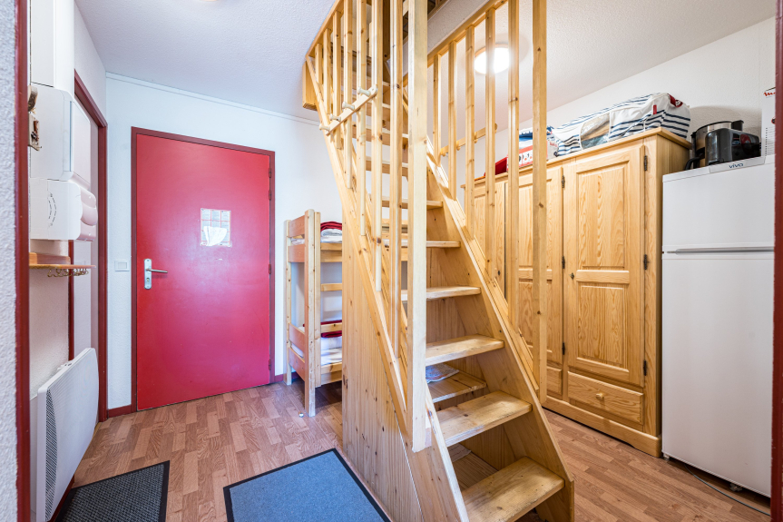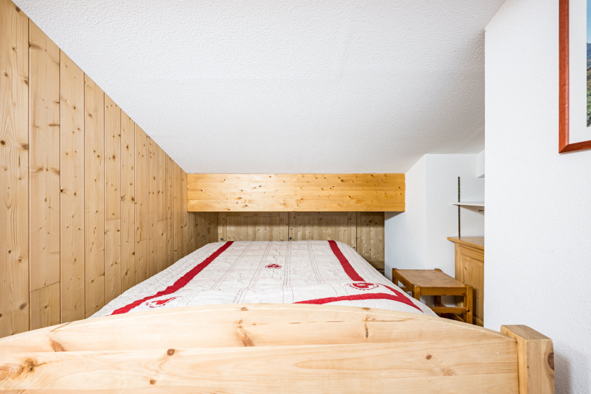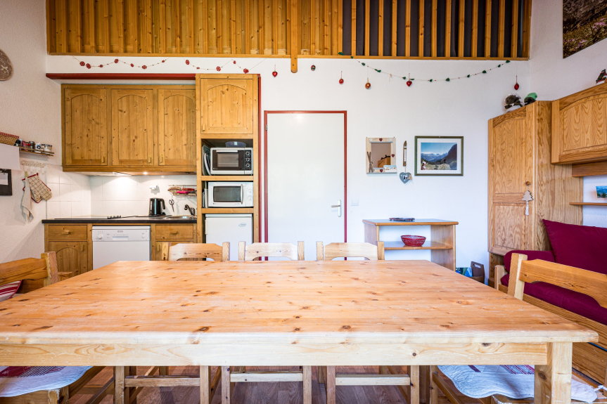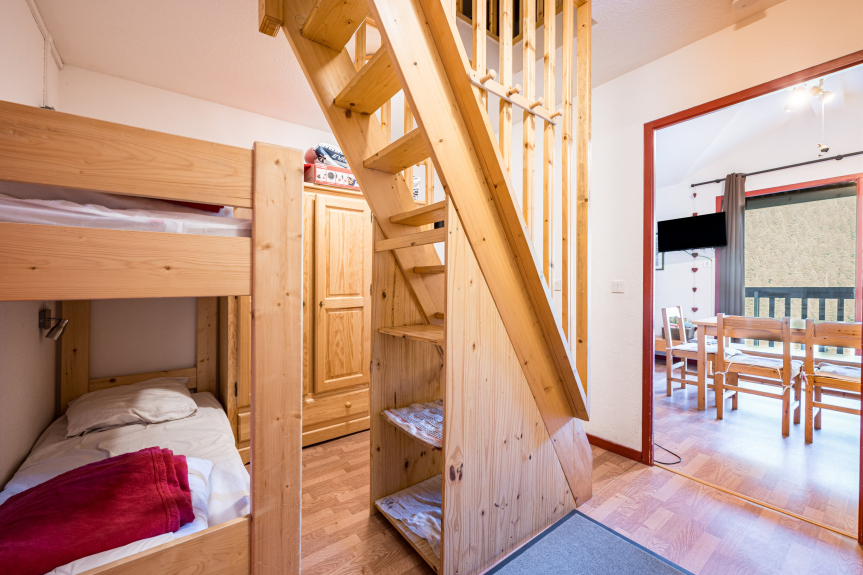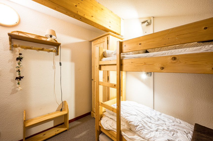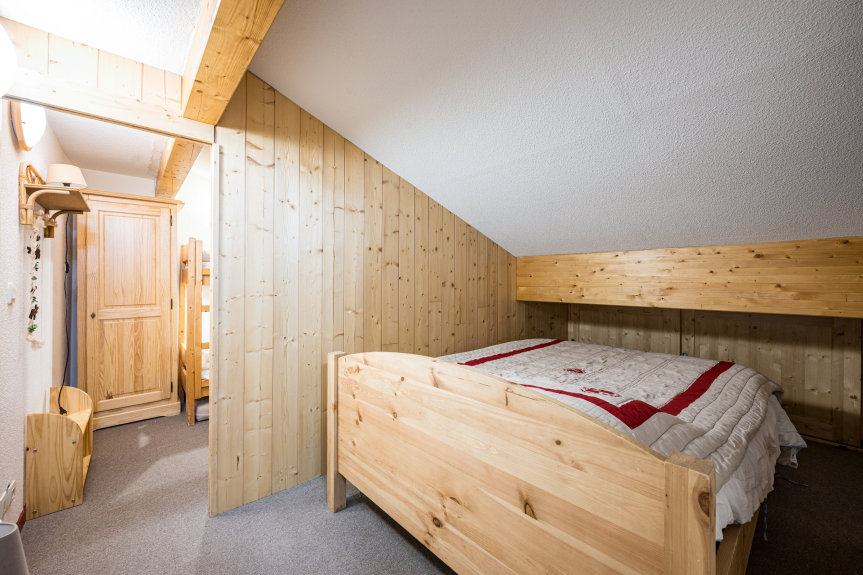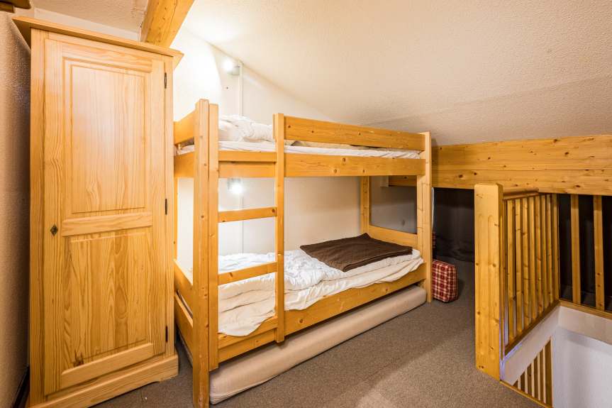 Duplex situé au 4ème étage de la résidence (avec ascenseur), avec mezzanine, pour 8 personnes, d'une surface de 53 m2 env., comprenant : grande pièce d'entrée avec 2 lits superposés et rangements, salle de bains avec baignoire et w.c., autre w.c., pièce de vie avec canapé-lit pour 2 personnes (téléviseur) + autre banquette + coin cuisine équipée (plaques chauffantes, four, micro-ondes, lave-vaisselle et réfrigérateur) ; une chambre fermée sur la mezzanine (lit pour 2 personnes et téléviseur) avec cabinet de toilette (douches) et palier avec 2 lits-superposés.