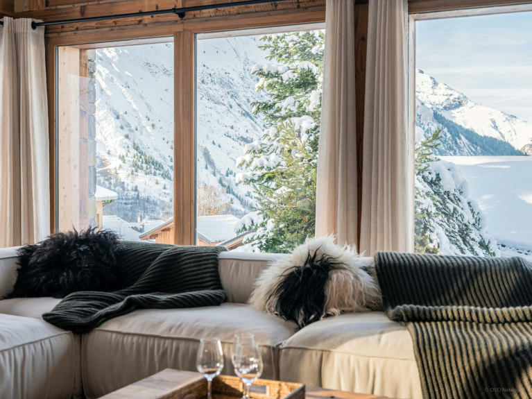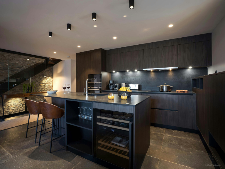 Cette dernière est illuminée par de grandes baies vitrées, qui semblent inviter les montagnes à l’intérieur. Le salon, équipé d’une télévision, donne sur une terrasse, où vous pourrez vous offrir des moments de détente dans un jacuzzi extérieur. La cuisine est moderne et équipée notamment d’un comptoir central, l’endroit idéal pour prendre un verre. Un sauna, accompagné d’une douche d’appoint, vous aidera à éliminer les toxines.