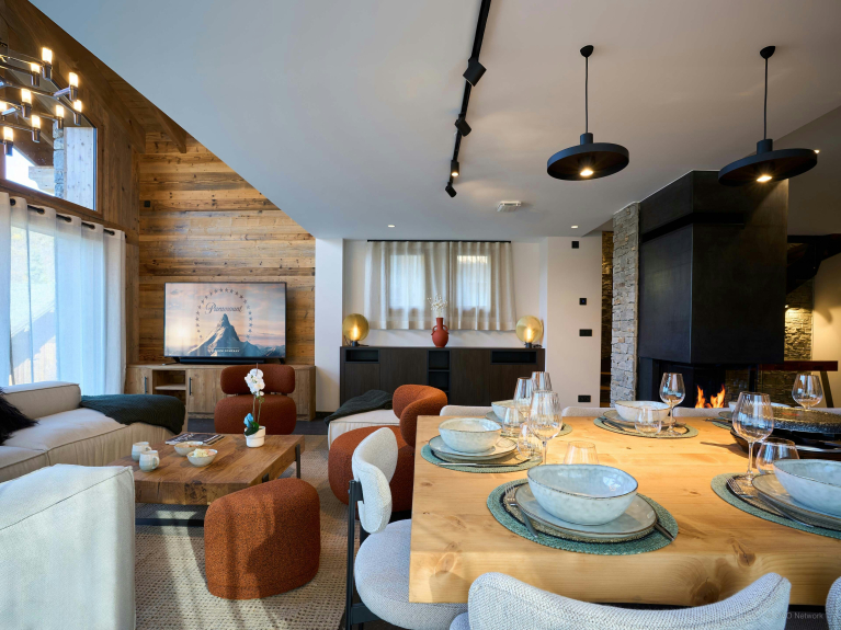 Vêtu de bois et de pierre, le Chalet Fango est une propriété moderne de trois étages pouvant accueillir jusqu’à 12 vacanciers. Chacune de ses cinq chambres est accompagnée de sa propre salle de bains.