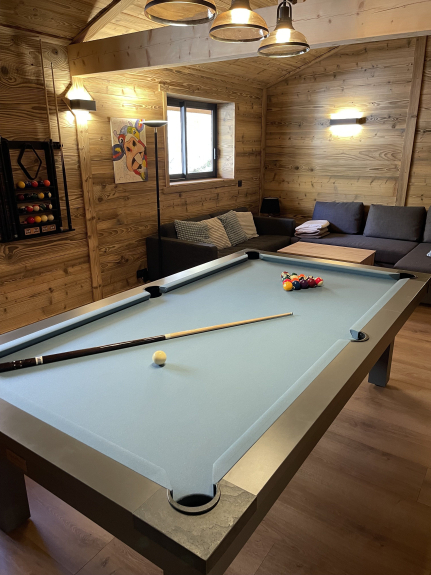 Ce chalet spacieux et confortable offre, en plus de nombreuses chambres, un espace détente remarquable avec salon, billard et salle de jeux pour enfants, baignoire balnéothérapie chromothérapie, un four à pizza et une plancha inox pour partager de bons moments en famille ou entre amis.