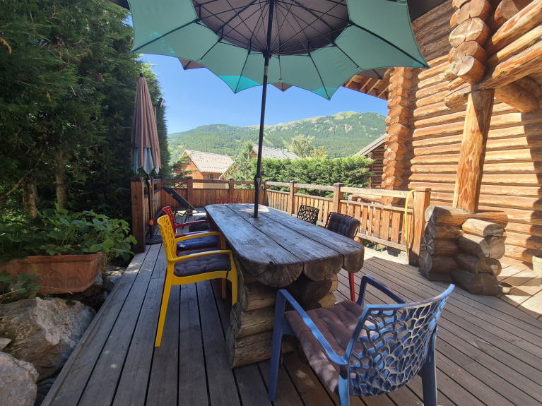 Situé à Allos, au cœur du parc National du Mercantour, dans une station réputée aussi bien l’hiver que l’été, ce magnifique chalet en rondins de construction traditionnelle et rare, est une véritable pépite.