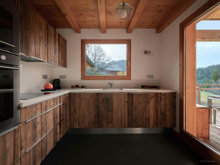 Côté pratique, vous trouverez une buanderie avec lave-linge et sèche-linge, un garage pour une voiture, ainsi qu’un local à skis avec sèche-chaussures chauffant.