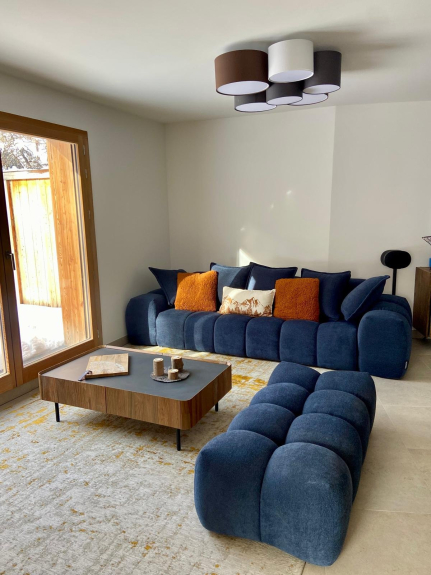 L’appartement est décoré dans un esprit chalet chic, créant une ambiance chaleureuse et raffinée, idéale pour des vacances mémorables à la neige.