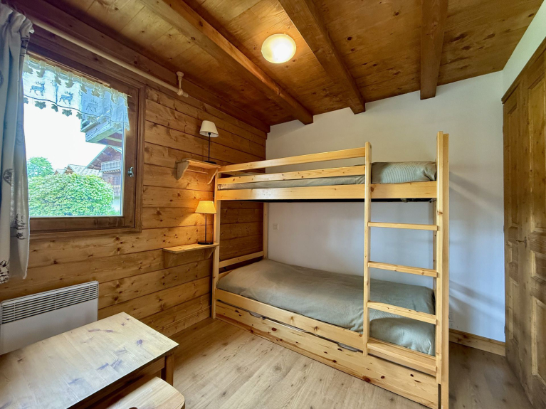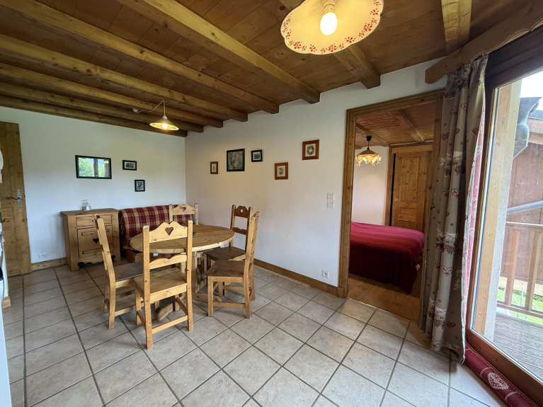 En été, vous serez non seulement à 600m des jeux pour enfants mais aussi à proximité de nombreux sentiers pour d'agréables ballades à pied ou en VTT. La télécabine de la Logère, ouvert 5 jours par semaine, vous permet d'accéder facilement aux plus beaux panoramas sur le Mont Blanc et les Aravis. Le plan d'eau de Flumet et sa base de loisirs sont à seulement 10km.
