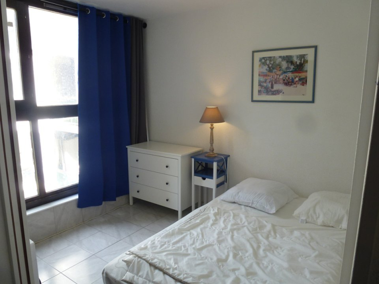 Séjour composé d'un coin détente, canapé lit 2 places, télévision, chambre 1 donnant sur extérieur, chambre 2 intérieure, grande cuisine américaine avec coin repas, salle d'eau, WC indépendants, carrelage au sol. Animaux refusés. Pas d'Internet. Place de parking privée extérieure