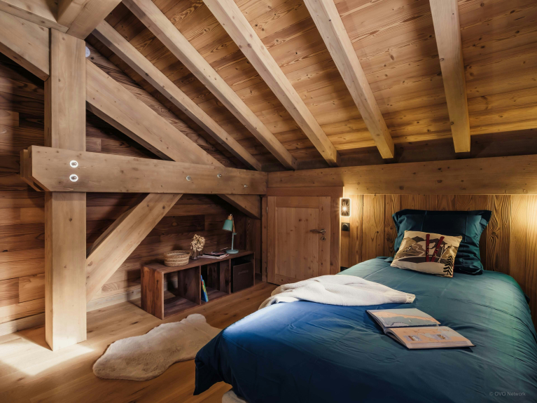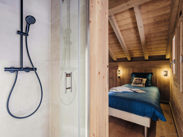Les cinq chambres du Chalet Alpage du Bettex sont très confortables, en particulier la suite parentale au premier étage, avec son dressing, sa salle de douche privée, son bureau et son accès direct au balcon. Les autres chambres profitent également de belles ouvertures sur le paysage alpin.