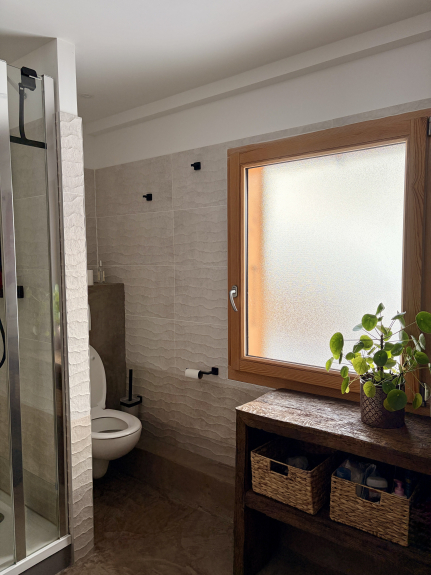 Salle d’eau avec douche à l'italienne. Sèche-cheveux et sèche-serviettes. WC indépendants.]