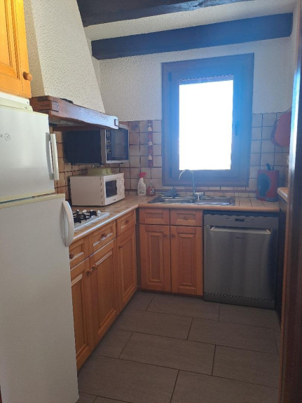 - 1 cuisine tout équipée avec lave-vaisselle, four, micro-ondes, appareil à raclette et fondue