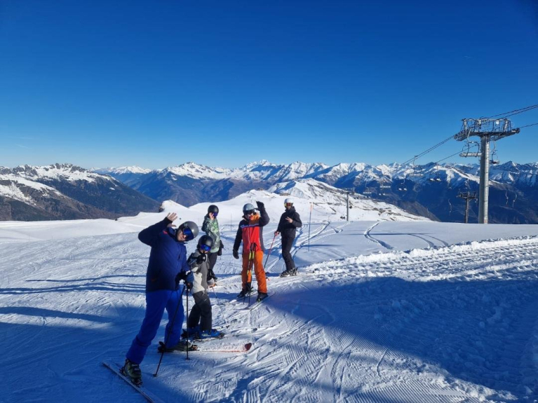 Arrivée et départ skis au pied.