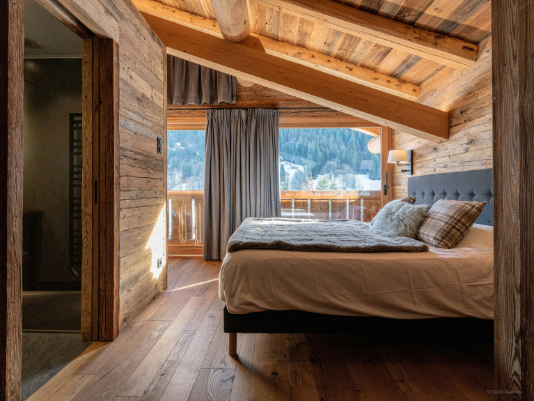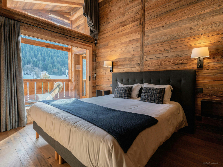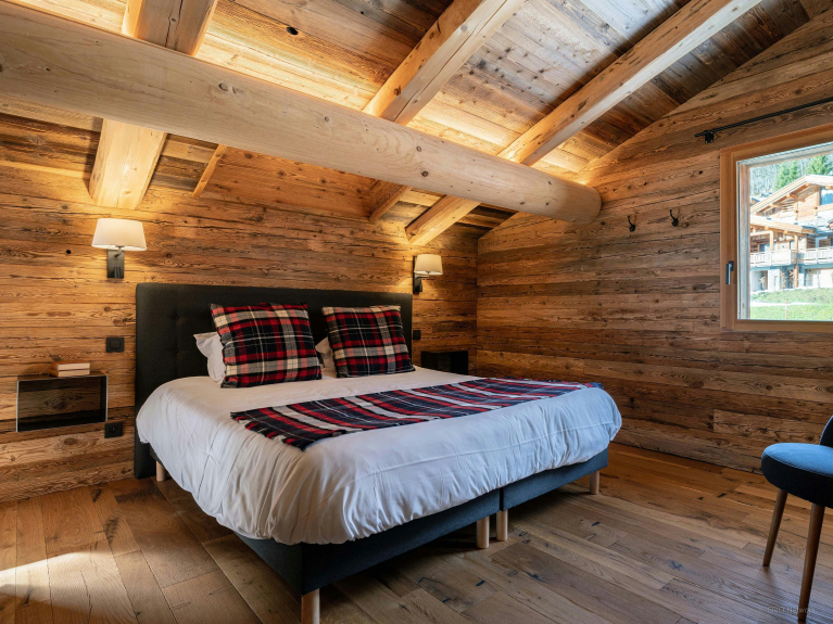 Côté repos, le chalet propose cinq chambres, dont un grand dortoir pensé pour les enfants, et quatre chambres doubles disposant chacune de leur salle de douche attenante. Toutes les chambres doubles sont ouvertes vers l’extérieur grâce à des balcons, et deux d’entre elles peuvent être aménagées en chambres jumelles, en fonction de vos besoins.
