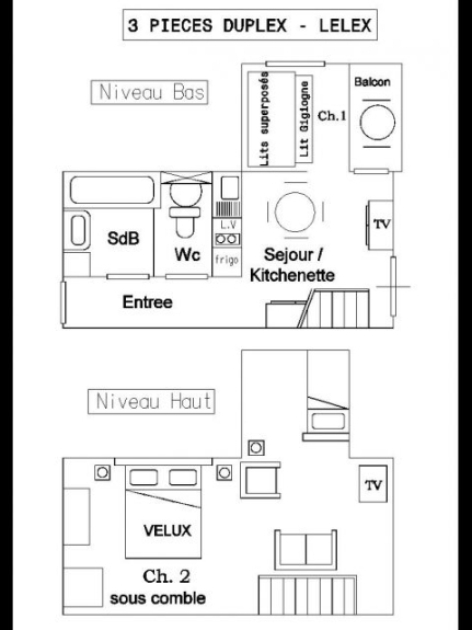 3 Pièces Duplex 45m² (5 pers) + Balcon, (Classé 2** refait en avril 2017)