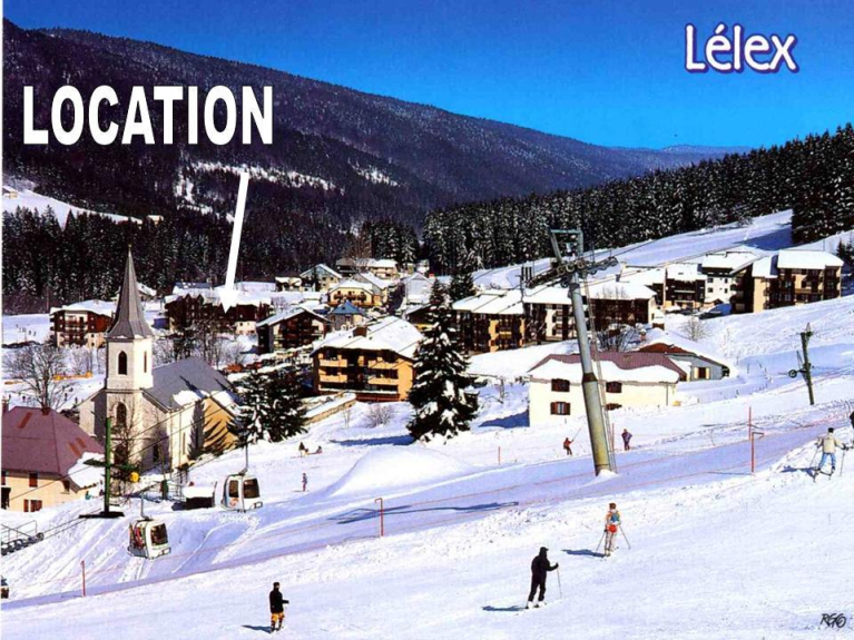 Notre location se situe à 200m des pistes et des télécabines de LELEX, dans la Station des MONTS-JURA (alt: 950m -1700m, Village typique du Jura) .