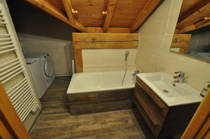 une douche et WC. SDB 2 : une baignoire + sèche cheveux mural. WC séparé .Lave linge et sèche linge .chaise et lit bébé .Cuisine, four, micro onde, lave vaisselle, réfrigérateur ,congélateur ,appareil à fondue ,appareil à raclette ,vaisselle Guy Degrenne ,1 salon.1 Salle a manger.Grand balcon exposé SO .Garage fermé pour une voiture.:la voiture n'est plus indispensable.L’hiver, une navette dessert le chalet toutes les 20 minutes. Elle passe au pied du chalet et vous dépose aux pieds des remontées mécaniques, de l’ESF en 5 minutes. Le chalet est à seulement 6 minutes du centre du village à pied et des remontées mécaniques.