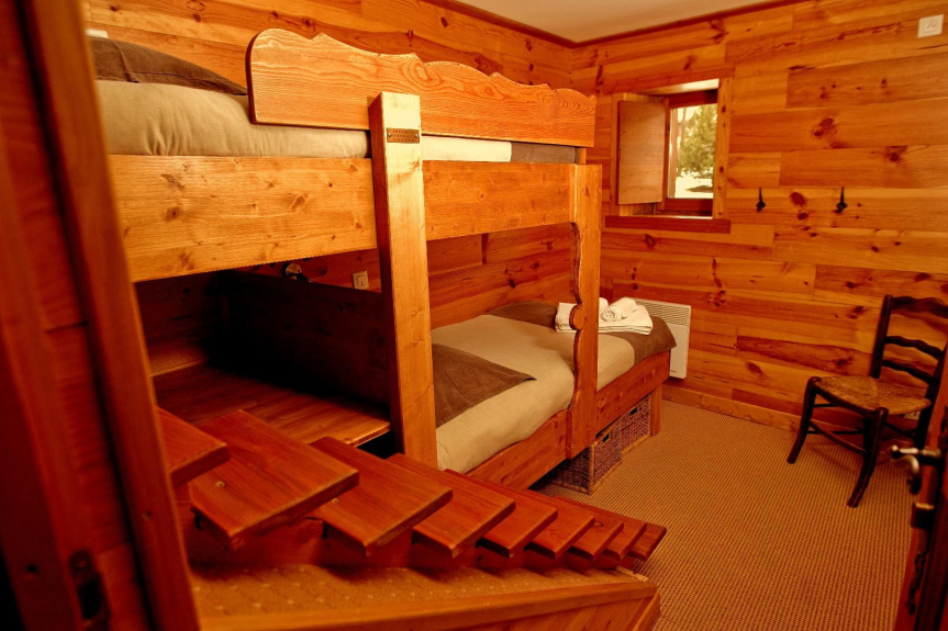 Très belles prestations : décoration raffinée type montagne (matériaux nobles et naturels), très bien équipé (4 salles d'eau + 1 balnéo optionnelle, matériel de cuisine pro, HIFI de qualité, DVD,WIFI,TV 42'Plasma,VMC, Satellite, digicode,sèche et cireuse chaussure...). Cuisine indépendante, toute équipée ; parties communes spacieuses et chaleureuses ; chambres confortable et intimes. 1 balcon aménagé au 2ème étage, 1 WC indépendant, 1 cheminée massive, 1 hall d'entrée conséquent.